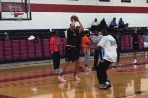 状态不错!克莱与迈克尔-比斯利一起打对抗赛 弹无虚发