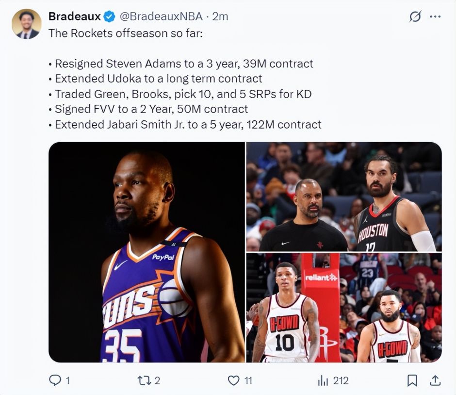 火箭队记Adam Spolane写道:申京与小贾的续约合同都极为让人吃惊,因为合同的薪资每年仅上浮10%,在这样一个球员身价普遍溢价的联盟,斯通的工作堪称完美。